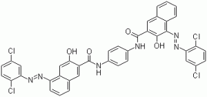 InChI: InChI = 1 / C40H24Cl4N6O4 / c41-23-9-15-31 (43) 33 (19-23) 47-49-35-27-7-3-1-5-21 (27) 17-29 ( 37 (35) 51) 39 (53) 45-25-11-13-26 (14-12-25) 46-40 (54) 30-18-22-6-2-4-8-28 (22) 36 (38 (30) 52) 50-48-34-20-24 (42) 10-16-32 (34) 44 / h1-20،51-52H، (H، 45،53) (H، 46، 54)